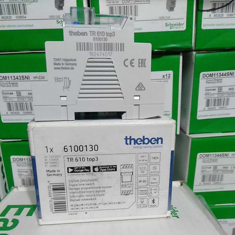 Timer Theben TR610 TOP2 Digita (OLD)l/ NEW TYPE TR610 TOP3 Timer 24 Jam/7 Hari Voltase 230-240 VAC 16 Ampere 50/60HzReserve: 10 AmpereDimensi: 45 x 35 63 mm56 Slot Time SettingORIGINAL Part by THEBENREADY STOC