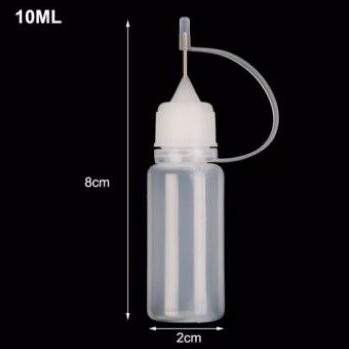 Botol jarum/tetes utk vape, henna, lem, oli, craft fine tip 10ml. MIN order 5rb, boleh campur dengan barang yg lainBotol kosong ukuran 10ml dgn ujung kecil utk memudahkan penggunaan cairan vape, lem art and craft, acrylic, hobi, pelumas dll yg membutuhkan ujung kecil utk keakuratan dan kerapihan hasil.Harga s