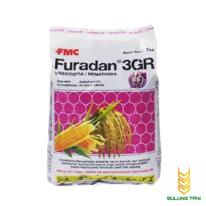 DIJUAL PER 100 GRAM REPACKFuradan 3GR merupakan Insektisida / Nematisida sistemik, berbentuk butiran Ungu, untuk mengendalikan hama Penggerek batang, Cacing, Uret, Semut pada akar tanaman.Dapat juga ditaburkan di persemaian sebelum bibit ditanam, agar tanah lebih subur sehingga bibit dapat tumbuh dengan baik.Tanaman dan Hama Sasaran :1. Cabai : nematoda/puru akar, orong-orong, bekicot/siput2. Padi : Ulat grayak, uret, larva kaper, penggerek batang3. Tomat : nematoda/puru akar, orong-orong, bekicot/siput, ulat, oeteng-oteng/kutu kuya4. Semangka : Bekicot, orong-orong, penggerek daun, penggerek batang, oteng-oteng/kutu kuya,5. Kubis : Ulat grayak, Perusak daun (Crocidolomia binotalis dan Plutella xylostella)6. Kacang hijau : Perusak daun, ulat grayak, oteng-oteng, orong-orong7. Timun : Bekicot, oteng-oteng, ulat8. Tembakau : Penggerek pucuk (Heliothis sp.) dan Ulat grayak (Spodoptera litura)9. Tebu : Penggerek batang (Chilo auricilius dan C.saccharipagus)10. Jagung : Penggerek batang11. Dan lain sebagainya.Kelebihan Furadan 3GR+ Berbentuk butiran yang mudah diaplikasikan dengan cara ditaburBaca juga Daftar Harga Insektisida Juni 2015 (III)+ Bekerja secara sistemik dan efektif untuk mengendalikan hama tanaman+ Efektif untuk mengendalikan hama didalam tanah seperti nematoda dan orong-orong+ Daya simpan lama dan tidak mudah rusak+ Dapat diserap oleh akar dan didstribusikan keseluruh jaringan tanaman, sehingga efektif untuk mengendalikan hama yang ada didalam tanaman seperti nematoda, penggorok daun (Leaf minner) dan penggerek batang+ Dapat digunakan untuk mengendalikan hama penggerek daun / oteng-oteng+ Dapat digunakan untuk mengendalikan hama bekicot/siput pada tanaman tomat, semangka atau timun+ Efektif digunakan untuk mengendalikan hama uret/penggerek batang pada tanaman padi dan j