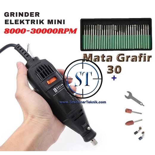Name: Mesin Bor Mini Grinder Electrik Drill Portable 8000-30000rpm 150w + 30 Mata Grafir