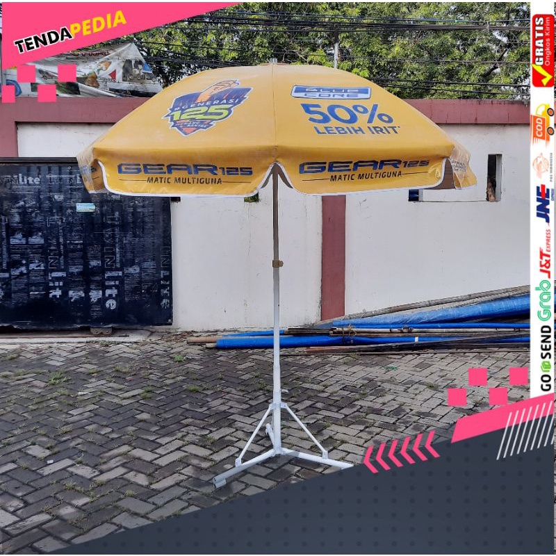 payung parasol Tersedia ukuran diameter.1.60 2m dan 2.30include.rangka besi jari"cover bahan pvc koreacetak sablon/printdesign suka"kaki besi lipat..#payungparasol #ou