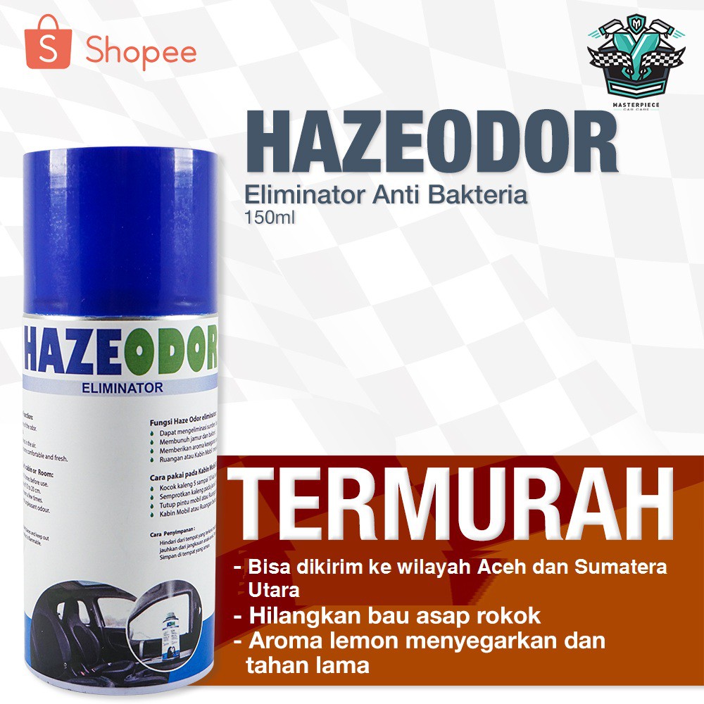 KHUSUS ACEH & SUMATERA UTARAHazeOdor Eliminator Anti Bakteri - Basmi Bau rokok, bau apek pada kabin mobil dan ruangan tertutup lainnya.HazeOdor Eliminator ialah produk spray yang dapat digunakan untuk menghilangkan segala jenis/sumber bau seperti bau Rokok, bau apek, didalam kabin mobil dan ruangan tertutup lainnya. Seperti Kamar Mandi, Ruang tidur, kabin mobil, ruang kantor.HazeOdor Eliminator juga dapat mematikan bakteri, menyerap debu dan memberikan aroma kesegaran didalam ruang.HazeOdor mampu mengatasi lembab dalam ruangan, tidak meninggalkan noda/bekas. Serta sangat aman digunakanCARA PAKAI HAZEODOR:1. Hilangkan/buang/singkirkan sumber bau, seperti sisa makanan, rokok, atau lainnya2. Siapkan Hazeodor, kocok sebentar3. Nyalakan engine mobil,4. Nyalakan AC mobil, dan putar pada posisi kencang.5. Pencet HAZEODOR full tekan kebawah, sehingga spray keluar tanpa harus dipencet6. Tutup rapat pintu/kaca mobil.7. HATI HATI BAGI MOBIL YANG BISA MENUTUP PINTU SECARA OTOMATIS. SIAPKAN KUNCI CADANGAN8. Biarkan HAZEODOR hingga habis, lalu tunggu lagi 5-10 menit9. MAtikan AC dan engine10. Buka kaca/ pintu mobil. biarkan hinggal 10 menit11. SELESAIBERAT : 1