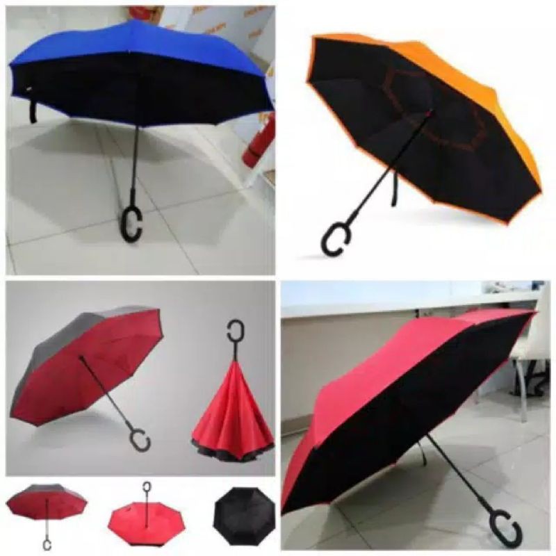 stok warna yg ada UNGU DAN MERAH MARON- Berdiameter besar daripada payung biasanya 110cm dengan 8 rangka- Terbuat dari 2 lapis kain (luar dan dalam)- Bahan gagang : Plastik- Bahan rangka : FiberPayung model unik yang berbentuk terbalik Kazbrella. Dengan model unik tersebut Anda tidak perlu lagi kerepotan membuka atau menutup payung saat kehujanan.Sangat cocok dan praktis untuk di bawa atau saat kehujanan masuk ke mobil .*Payung Trend masa kini*Anti Basah kuyup Karena Modelnya yang terbalik maka airnya akan tertahan di sisi sebaliknya .*Fashionable tidak mengurangi gaya Pakaianmu*Tombol buka tutup sangat nyaman & gampang ( tidak melukai tangan ) .*Praktis ,sangat cocok untuk selama perjalanan jauh dan angin kencang*Kain tidak mudah kusut dan halus Karena menggunakan bahan Pongee yang sangat bermutu tidak gampang rusak*Tiang anti karat dilapisi cat hitam *Kuat saat tertiup angin Kencang sekalipun Karena menggunakan Rangka fiber yang berkuali