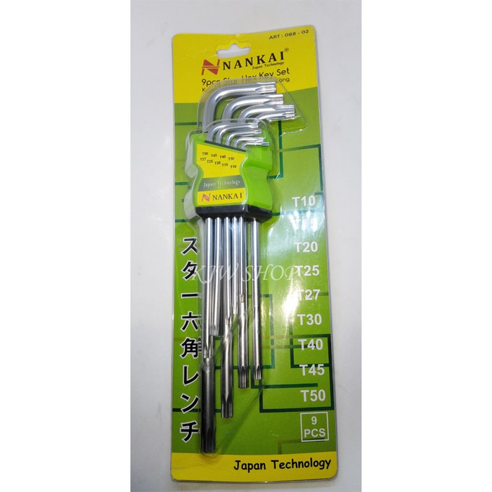Kunci L Set Bintang PanjangMerk : NankaiType : 9 pcsInclude in set : T10, T15, T20, T25, T27, T30, T40, T45
