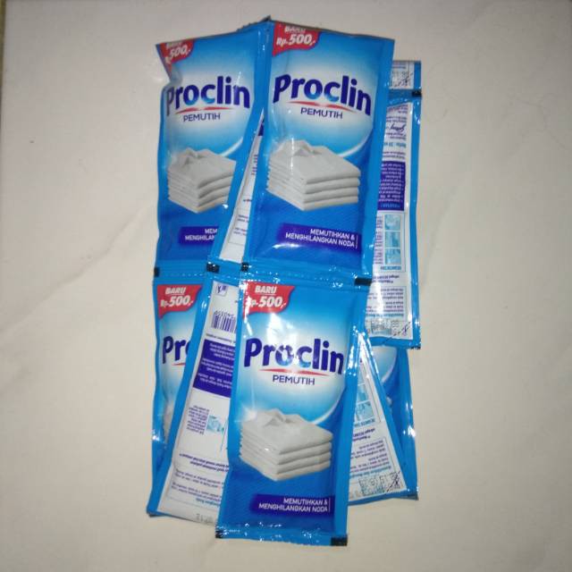 Proclin Pemutih 30ml Isi 12 Pcs / PakHarga bersaing silahkan diorderHarga tertera untuk 12pcs. Per sachet isi 30ml. Memutihkan dan menghilangkan noda pada pakaian anda. Yuk cek toko ini untuk temukan berbagai kebutuhan anda. #proclin #pemutihpak